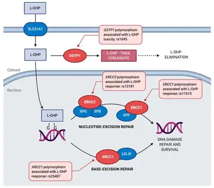 Mode of action of Oxaliplatin(5-FU/LV in combination with oxaliplatin (L-OHP), also known as FOLFOX)[20]