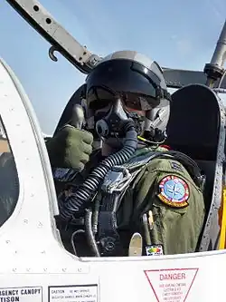 Many designs of aviator's oxygen masks contain a microphone to transmit speech to other crew members and to the aircraft's radio. Military aviators' oxygen masks have face pieces that partially cover the sides of the face and protect the face against flash burns, flying particles, and effects of a high speed air stream hitting the face during emergency evacuation from the aircraft by ejection seat or parachute. They are often part of a pressure suit or intended for use with a flight helmet.