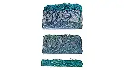 Ozarkcollenia is an extinct genus of stromatolite-making cyanobacteria from Missouri, United States. It was related to Collenia.[1] Ozarkcollenia may have formed in a lake of volcanic origin. The fossils of Ozarkcollenia laminata have been dated to the Proterozoic eon, about 1.5 billion years ago. It occurs in parts of Missouri's Ozark Mountains.[2]