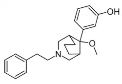 - ↑ Zhou DH, Ge BL, Xu XJ, Chi ZQ (November 1988). "[Effects of the long-acting analgesics 3-(beta-phenylethyl)-9 beta-methoxy-9 alpha-(m-hydroxyphenyl)-3-azabicycles [3,3,1]-nonane (P-7521) on opiate receptor binding in vitro]". Zhongguo Yao Li Xue Bao = Acta Pharmacologica Sinica. 9 (6): 511–515. PMID 2855686.