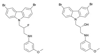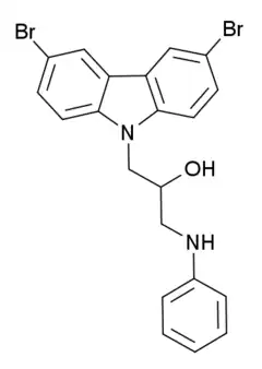 P7C3 (pool 7, compound 3) is a drug related to latrepirdine (dimebon) which has neuroprotective and proneurogenic effects and may be potentially useful for the treatment of Alzheimer's disease and similar neurodegenerative disorders. The pharmacological effects of P7C3 in vitro resemble those of endogenous proneurogenic peptides such as fibroblast growth factor 1 (FGF-1), and the proneurogenic activity of P7C3 was around thirty times that of latrepirdine when they were compared in mice. P7C3 was chosen for further animal studies on the basis of favorable pharmacokinetic factors, such as its high oral bioavailability and long duration of action, but several other related compounds showed similar activity such as the more potent fluorinated analogue P7C3A20 which is up to ten times stronger again, and the methoxy analogue P7C3-OMe, for which it was determined that the (R) enantiomer is the active form.[1]