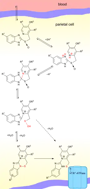 - ↑ 7.0 7.1 7.2 Sachs, G.; Shin, J. M.; Howden, C. W. (2006). "Review article: The clinical pharmacology of proton pump inhibitors". Alimentary Pharmacology and Therapeutics. 23: 2–8. doi:10.1111/j.1365-2036.2006.02943.x. PMID 16700898. S2CID 30413194.