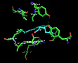 - 1 2 Kurumbail RG, Kiefer JR, Marnett LJ (December 2001). "Cyclooxygenase enzymes: catalysis and inhibition". Current Opinion in Structural Biology. 11 (6): 752–760. doi:10.1016/S0959-440X(01)00277-9. PMID 11751058.