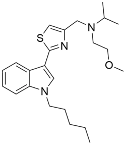PTI-2 (SGT-49) is an indole-based synthetic cannabinoid.[1] It is one of few synthetic cannabinoids containing a thiazole group and is closely related to PTI-1. These compounds may be viewed as simplified analogues of indole-3-heterocycle compounds originally developed by Organon and subsequently further researched by Merck.[2][3][4]