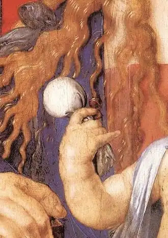 A Madonna and child painted by Dürer in 1506[6] shows one of these tied-cloth "pacifiers" in the baby's hand.