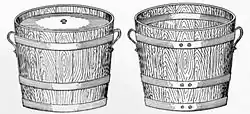 The Rochdale system was first used in 1869. It used a wooden tub, or pail (sometimes half of a petroleum barrel), which was placed under the closet seat. The pails were often circular (to aid cleaning),[10] and were designed to be easily handled and of a size that encouraged regular collections.[11] The top of the pail carried a cast iron rim about 3 inches deep to receive a tight-fitting inner lid. The pails were collected on a weekly basis during the day. Each pail was secured by its lid and loaded onto a sealed 24-bay wagon to be taken to a depot where they were emptied, cleaned and returned. While the pail was removed from the closet, a replacement was installed in its place. In 1874, Rochdale Corporation employed five such wagons in full-time service, collecting from 3,354 privies spread across the town. By contrast, with a much larger population, Manchester Corporation employed 73 wagons.[12] By 1875, 4,741 pails were in use, and in 1876 the number was 5,566. A separate cart accompanied the wagon to collect other household refuse which was collected from a separate chamber in the pail closet.[13][14]