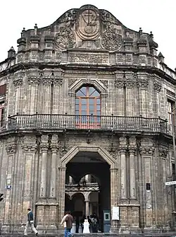 The Palace of the Inquisition is a building in Mexico City built in the 1730s as the headquarters of the Mexican Inquisition, which now houses the Museum of Mexican Medicine.[1] The building stands at the junction of República de Brasil and República de Venezuela streets, with its entrance at a canted corner facing Santo Domingo Plaza. When the Inquisition was abolished after the Mexican War of Independence, the building's association made it difficult to convert to other purposes.[2] It eventually became the School of Medicine for the reconstructed National University, now the National Autonomous University of Mexico (UNAM). When UNAM moved to the Ciudad Universitaria in the 1950s, it retained ownership of the building, eventually converting it into the museum it is today.
