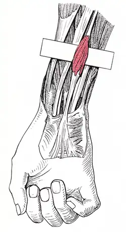| Antagonist | Extensor carpi radialis brevis, extensor carpi radialis longus, extensor carpi ulnaris |