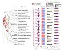 - ↑ Martínez-Jiménez, Francisco; Movasati, Ali; Brunner, Sascha Remy; Nguyen, Luan; Priestley, Peter; Cuppen, Edwin; Van Hoeck, Arne (June 2023). "Pan-cancer whole-genome comparison of primary and metastatic solid tumours". Nature. 618 (7964): 333–341. Bibcode:2023Natur.618..333M. doi:10.1038/s41586-023-06054-z. ISSN 1476-4687. PMC 10247378. PMID 37165194.
