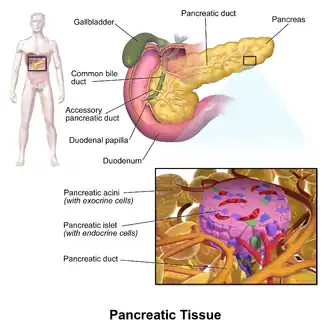 - ↑ Cabrera O, Berman DM, Kenyon NS, Ricordi C, Berggren PO, Caicedo A (February 2006). "The unique cytoarchitecture of human pancreatic islets has implications for islet cell function". Proceedings of the National Academy of Sciences of the United States of America. 103 (7): 2334–2339. Bibcode:2006PNAS..103.2334C. doi:10.1073/pnas.0510790103. PMC 1413730. PMID 16461897.