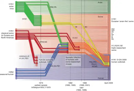 Genetic origins of the 2009 swine flu virus[78]