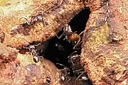 - ↑ Menzel, F.; Blüthgen, N. (2010). "Parabiotic associations between tropical ants: equal partnership or parasitic exploitation?". Journal of Animal Ecology. 79 (1): 71–81. Bibcode:2010JAnEc..79...71M. doi:10.1111/j.1365-2656.2009.01628.x. PMID 19891712.