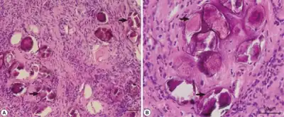 - ↑ Roberts PP (1988). "Parasitic infections of the pleural space". Semin Respir Infect. 3 (4): 362–382. PMID 3062728.