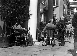 Journalist John Gunther reported that in the 1930s, he often met people in Europe, including world leaders, who were unaware of Roosevelt's paralysis.[11]: 239 David Brinkley, who was a young White House reporter in World War II, stated that the Secret Service actively interfered with photographers who tried to take photos of Roosevelt in a wheelchair or being moved about by others. The Secret Service commonly destroyed photographs they caught being taken in this manner; however, there were occasional exceptions.[8][13][14][15]