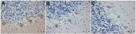 - ↑ Jaeckle KA, Graus F, Houghton A, Cardon-Cardo C, Nielsen SL, Posner JB (1985). "Autoimmune response of patients with paraneoplastic cerebellar degeneration to a Purkinje cell cytoplasmic protein antigen". Ann. Neurol. 18 (5): 592–600. doi:10.1002/ana.410180513. PMID 2416270. S2CID 21318072.