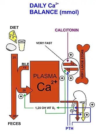 - ↑ Walter F (2003). "The Parathyroid Glands and Vitamin D". Medical Physiology: A Cellular And Molecular Approach. Elsevier/Saunders. p. 1094. ISBN 1-4160-2328-3.