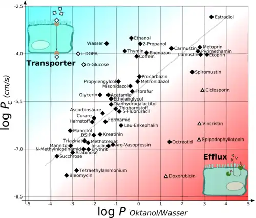 - ↑ Kwon Y (2001). "4.2.4: Partition and Distribution Coefficients". Handbook of Essential Pharmacokinetics, Pharmacodynamics and Drug Metabolism for Industrial Scientists. New York: Kluwer Academic/Plenum Publishers. p. 44. ISBN 978-1-4757-8693-4.