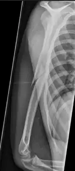 A pathologic fracture is a bone fracture caused by weakness of the bone structure that leads to decrease mechanical resistance to normal mechanical loads.[1] This process is most commonly due to osteoporosis, but may also be due to other pathologies such as cancer, infection (such as osteomyelitis), inherited bone disorders, or a bone cyst. Only a small number of conditions are commonly responsible for pathological fractures, including osteoporosis, osteomalacia, Paget's disease, Osteitis, osteogenesis imperfecta, benign bone tumours and cysts, secondary malignant bone tumours and primary malignant bone tumours.