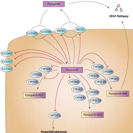 - ↑ "Pazopanib Pathway, Pharmacokinetics". PharmGKB.