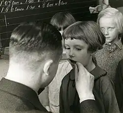 In 1909 Minnie Evangeline Jordon established the first dental practice in the United States devoted only to pediatric patients.[6] In 1925 she published the first textbook on pediatric dentistry, titled Operative Dentistry for Children.[7][8][9][10] The first dental care brought to public school was Alfred Fones in 1914, which was near 6 decades after the first woman, Lucy Hobbs Taylor, who received a DDS.[11]