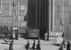 In 1969,[6] a Dutch Feminist group called Dolle Mina was founded to campaign for equal rights for women, including public "pee-right".[7] The group mainly fought to improve said rights by using protests in a playful and humorous manner.[8] One of these protests occurred in Amsterdam's Dam Square in April 1970, installing a "towering papier-mâché penis with a sign that read damestoilet (ladies' room)." The structure was placed there to address the lack of public toilets for women in Amsterdam.[9] That same year, several public toilets were wrapped with pink ribbons to protest this imbalance.[10]