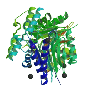 - ↑ 1.0 1.1 Graham ML (2003). "Pegaspargase: a review of clinical studies". Adv. Drug Deliv. Rev. 55 (10): 1293–302. doi:10.1016/S0169-409X(03)00110-8. PMID 14499708.