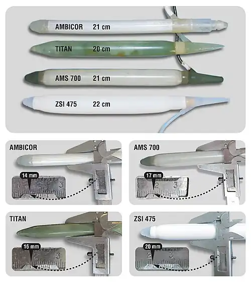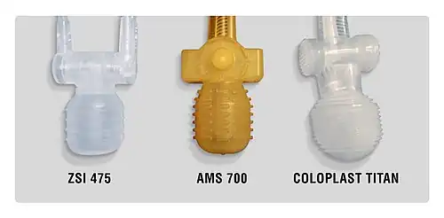The first modern prosthetic reconstruction of a penis is attributed to NA Borgus, a German physician who performed the first surgical attempts in 1936 on soldiers with traumatic amputations of the penis. He used rib cartilages as prosthetic material and reconstructed the genitals for both micturition and intercourse purposes.[3] Willard E. Goodwin and William Wallace Scott were the first to describe the placement of synthetic penile implants using acrylic prosthesis in 1952.[4] Silicone-based penile implants were developed by Harvey Lash and the first case series were published in 1964.[5] The development of a high-grade silicone that is currently used in penile implants is credited to NASA.[6] The prototypes of the contemporary inflatable and malleable penile implants were presented in 1973 during the annual meeting of the American Urological Association by two groups of physicians from Baylor University (Gerald Timm, William E. Bradley and F. Brantley Scott) and University of Miami (Michael P. Small and Hernan M. Carrion).[3][7][8] Small and Carrion pioneered the popularization of semi-rigid penile implants with the introduction of Small-Carrion prosthesis (Mentor, USA) in 1975. Brantley Scott described the initial device as composed of two inflatable cylindrical bodies made up of silicone, a reservoir containing radiopaque fluid and two pumping units.[7] The first generation products were marketed through American Medical Systems (AMS; currently Boston Scientific), with which Brantley Scott was associated.[6][9] Many device updates have been released by AMS since the first generation implants. In 1983, Mentor (currently Coloplast) joined the market.[6] In 2017, there were more than ten manufacturers of penile implants in the world, however only a few now remain in the market.[10] The latest additions to the market are Zephyr Surgical Implants and Rigicon Innovative Urological Solutions.[11][12] Zephyr Surgical Implants, along with penile implants for biological males, introduced the first line of inflatable and malleable penile implants designed for sex reassignment for trans men. In recent years, Rigicon Innovative Urological Solutions, a US-based company, has made significant advancements in the field of penile implants. In 2017, they released the 'Rigi10,' a malleable implant that expanded the market's options. Following this, in 2019, they introduced both the 'Infla10' series, which includes the Infla10 AX, Infla10 X, and Infla10 models, and the 'Rigi10 Hydrophilic.' These inflatable and hydrophilic-coated malleable models respectively were important additions to the range of penile implant technologies available. These advancements have contributed to the diversity and progress in the development of penile implants, offering patients more varied and tailored treatment solutions.[13][14]