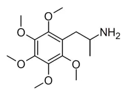 Pentamethoxyamphetamine (PeMA), also known as 2,3,4,5,6-pentamethoxyamphetamine (2,3,4,5,6-PeMA), is a chemical compound of the phenethylamine and amphetamine families related to the psychedelic drug mescaline (3,4,5-trimethoxyphenethylamine).[1][2] It is the α-methyl or amphetamine derivative of pentamethoxyphenethylamine (PeMPEA).[1][2] The compound does not seem to have been tested in animals or humans.[1][2] However, the related drug PeMPEA is known to be behaviorally active in animal studies.[1][3] PeMA was first described in the scientific literature by Alexander Shulgin by 1969.[2]