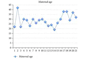 Maternal age in 21 cases of pentasomy X, showing the unclear relationship