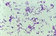 Peptostreptococcus anaerobius is a species of bacteria belonging to the Peptostreptococcus genus of anaerobic, Gram-positive, non-spore forming bacteria. The cells are small, spherical, and can occur in short chains, in pairs or individually.[2] Peptostreptococcus are slow-growing bacteria sometimes resistance to antimicrobial drugs.[3] P. anaerobius is intrinsically resistant to sodium polyethanol sulfonate (SPS), a component found in many types of blood culture media. [4]