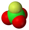 Perchloryl fluoride[6] is a reactive gas with the chemical formula ClO3F. It has a characteristic sweet odor[7] that resembles gasoline and kerosene. It is toxic and is a powerful oxidizing and fluorinating agent. It is the acid fluoride of perchloric acid.