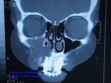 CT scan through head showing a right periapical cyst