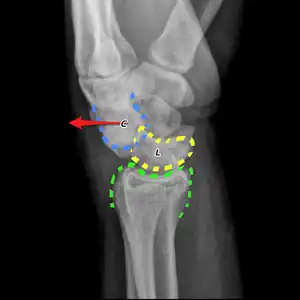 - ↑ 1.0 1.1 1.2 1.3 1.4 1.5 1.6 Bentley, TP; Hope, N; Journey, JD (January 2024). "Wrist Dislocation". StatPearls. PMID 29939534.