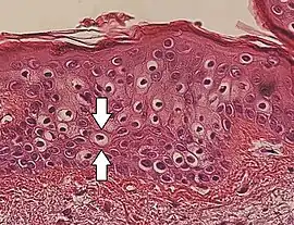 It is one of the components of koilocytosis, which may be present in potentially pre-cancerous cervical, oral and anal lesions.[2]