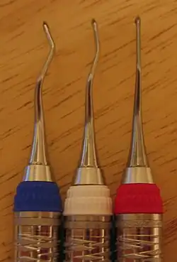 - ↑ Rempel D, Lee DL, Dawson K, Loomer P. The effects of periodontal curette handle weight and diameter on arm pain a four-month randomized controlled trial. J Am Dent Assoc. 2012;143(10):1105-1113.