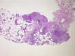 Peritonitis is inflammation of the peritoneum, the lining of the inner wall of the abdomen and cover of the abdominal organs.[2] Symptoms may include severe pain, swelling of the abdomen, fever, or weight loss.[2][3] One part or the entire abdomen may be tender.[1] Complications may include shock and acute respiratory distress syndrome.[4][5]