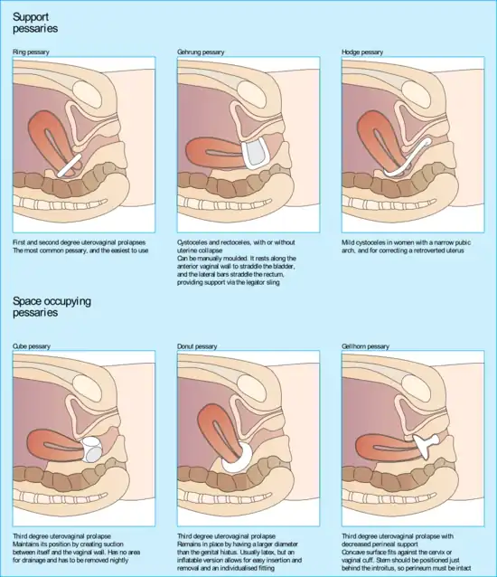- ↑ "Pessary". Northwestern Medicine. Archived from the original on 2020-08-09. Retrieved 2020-07-30. Archived 2020-08-09 at the Wayback Machine