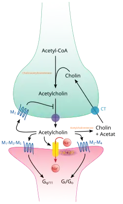 The cholinergic synapse and the breakdown of acetylcholine into choline and acetate by acetylcholinesterase