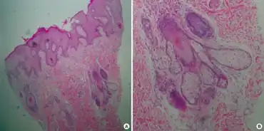 - ↑ Freedberg, et al. (2003). Fitzpatrick's Dermatology in General Medicine. (6th ed.). McGraw-Hill. ISBN 0-07-138076-0.