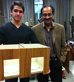 Mirror box therapy is a simple and inexpensive therapy for phantom pain that was first invented in the 1990s by neuroscientist Vilayanur S. Ramachandran. Individuals place their intact limb in front of the mirror and voluntarily move the limb, giving them the visual that their absent limb is also moving. It allows for illusions of movement and touch in a phantom limb by inducing somatosensory and motor pathway coupling between the phantom and real limb.[22] Many patients experience pain as a result of a clenched phantom limb, and because phantom limbs are not under voluntary control, unclenching becomes impossible.[36] This theory proposes that the phantom limb feels paralyzed because there is no feedback from the phantom back to the brain to inform it otherwise. Ramachandran believes that if the brain received visual feedback that the phantom limb had moved, then the phantom limb would become unparalyzed.[36]