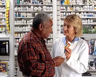 The most common pharmacist positions are that of a community pharmacist (also referred to as a retail pharmacist, first-line pharmacist or dispensing chemist), or a hospital pharmacist, where they instruct and counsel on the proper use and adverse effects of medically prescribed drugs and medicines.[3][4] In most countries, the profession is subject to professional regulation. Depending on the legal scope of practice, pharmacists may contribute to prescribing (also referred to as "pharmacist prescribers") and administering certain medications (e.g., immunizations) in some jurisdictions. Pharmacists may also practice in a variety of other settings, including industry, wholesaling, research, academia, formulary management, military, and government.