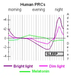 - ↑ Lewy AJ, Ahmed S, Jackson JM, Sack RL (October 1992). "Melatonin shifts human circadian rhythms according to a phase-response curve". Chronobiology International. 9 (5): 380–92. doi:10.3109/07420529209064550. PMID 1394610.