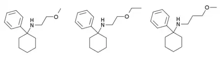 - ↑ Sauer C, Peters FT, Staack RF, Fritschi G, Maurer HH (October 2008). "Metabolism and toxicological detection of the designer drug N-(1-phenylcyclohexyl)-3-methoxypropanamine (PCMPA) in rat urine using gas chromatography-mass spectrometry". Forensic Science International. 181 (1–3): 47–51. doi:10.1016/j.forsciint.2008.09.001. PMID 18922655.