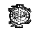 At the grand chapter meeting on December 2, 1896, the badge was updated to a monogram design submitted by Gamma chapter.[15] The modified badge consists of the letters Φ, Ρ, and Σ as a gold monogram outline, with Φ on a separate plane above the other two letters, set in pearls.[5]