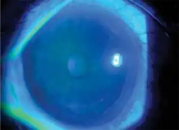 Fluorescein dye staining will reveal damage to the cornea under ultraviolet light.[8]