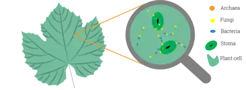 Material was copied from this source, which is available under a Creative Commons Attribution 4.0 International License. - ↑ Vorholt, Julia A. (2012). "Microbial life in the phyllosphere". Nature Reviews Microbiology. 10 (12): 828–840. doi:10.1038/nrmicro2910. hdl:20.500.11850/59727. PMID 23154261. S2CID 10447146.