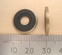 The Bodok seal consists of a neoprene washer with a peripheral metal reinforcing ring to prevent splaying. The seal is incombustible and resistant to the high pressures imposed upon it by cylinder gases, approximately 2,000 psi (140 bar) in a full cylinder.