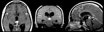 - ↑ Kivelä T (June 1999). "Trilateral retinoblastoma: a meta-analysis of hereditary retinoblastoma associated with primary ectopic intracranial retinoblastoma". Journal of Clinical Oncology. 17 (6): 1829–37. doi:10.1200/JCO.1999.17.6.1829. PMID 10561222.