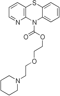 Pipazetate (INN) (brand names Dipect, Lenopect, Selvigon, Theratuss, Toraxan), or pipazethate (USAN), is a 1-azaphenothiazine drug that was briefly marketed as a cough suppressant.[1][2] It binds to the sigma-1 receptor with an IC50 value of 190 nM.[3] It also has local anesthetic action, and in large doses can produce seizures.[4]