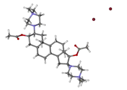 Pipecuronium (Arduan) is a bisquaternary aminosteroid muscle relaxant[1] which blocks nicotinic acetylcholine receptors[2][3] at the neuromuscular junction. It is also an antagonist of M2 and M3 muscarinic receptors[2] and is the most potent neuromuscular blocking agent of the aminosteroid class.